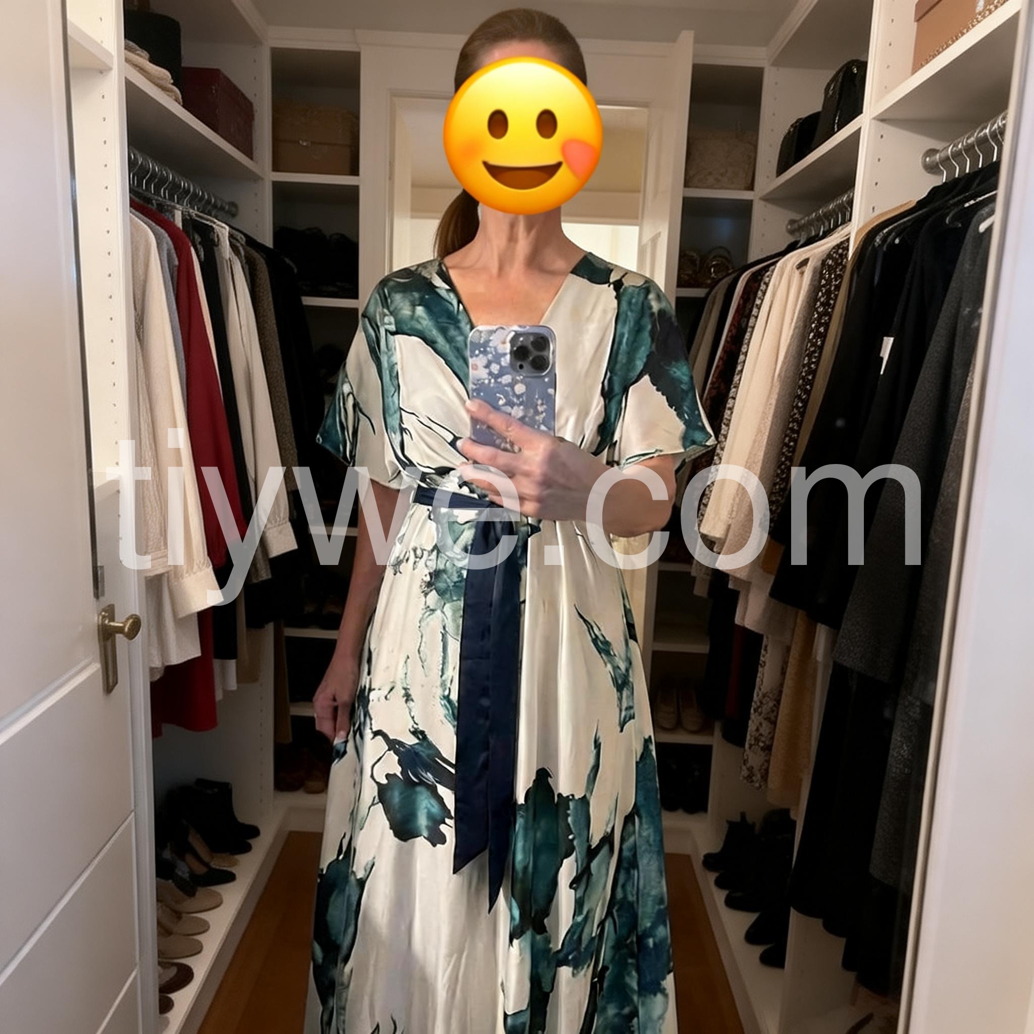 Absolutely stunning print. The teal and white watercolor design looks even better in person. It feels like a high-end designer piece but at a fraction of the cost. Perfect for a summer wedding guest outfit.