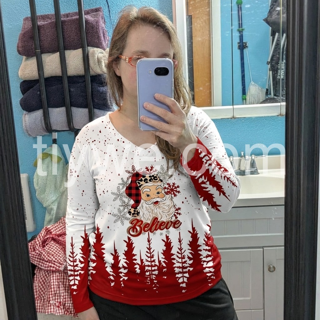 Love this shirt. Perfect for the holiday season for casual outings. Fits perfect.