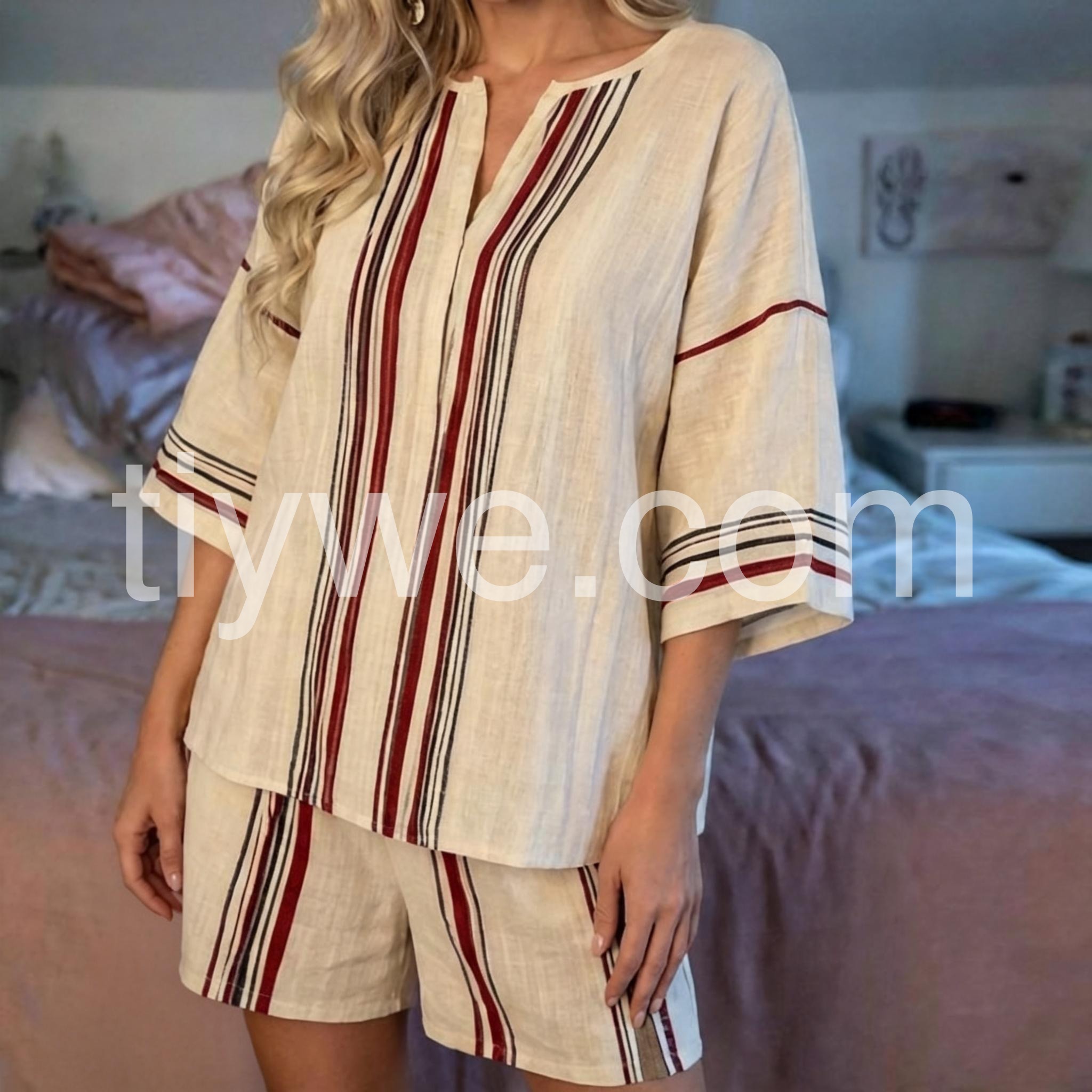 I bought this set for my trip to Greece and it was perfect! The material is so lightweight and breathable, which was exactly what I needed for the hot weather. It looks chic but feels like pajamas. Highly recommend!