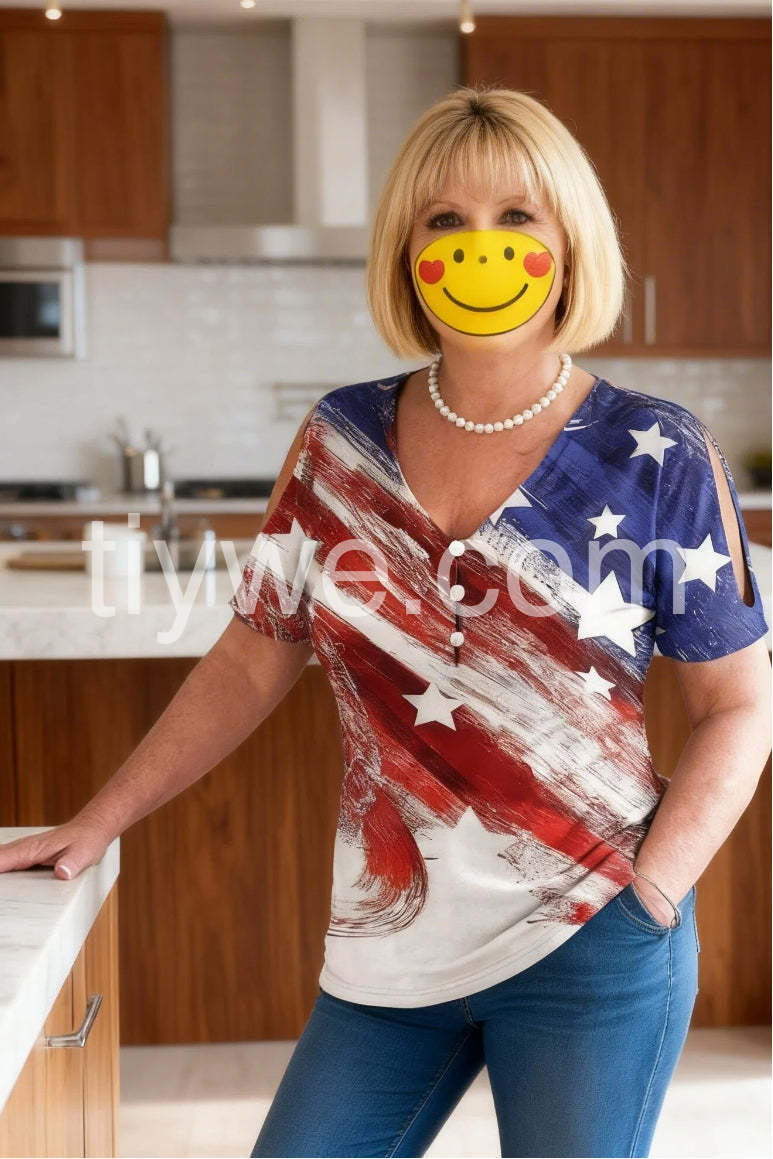 Super cute and good quality!\\r\\nI am 125lbs, 5’2 and wear a 34D and I ordered the small. I don’t like my stuff tight but also don’t want it too oversized. This fit perfect. The flag design is vibrant and stylish – I've already gotten so many compliments! 🇺🇸💖😊