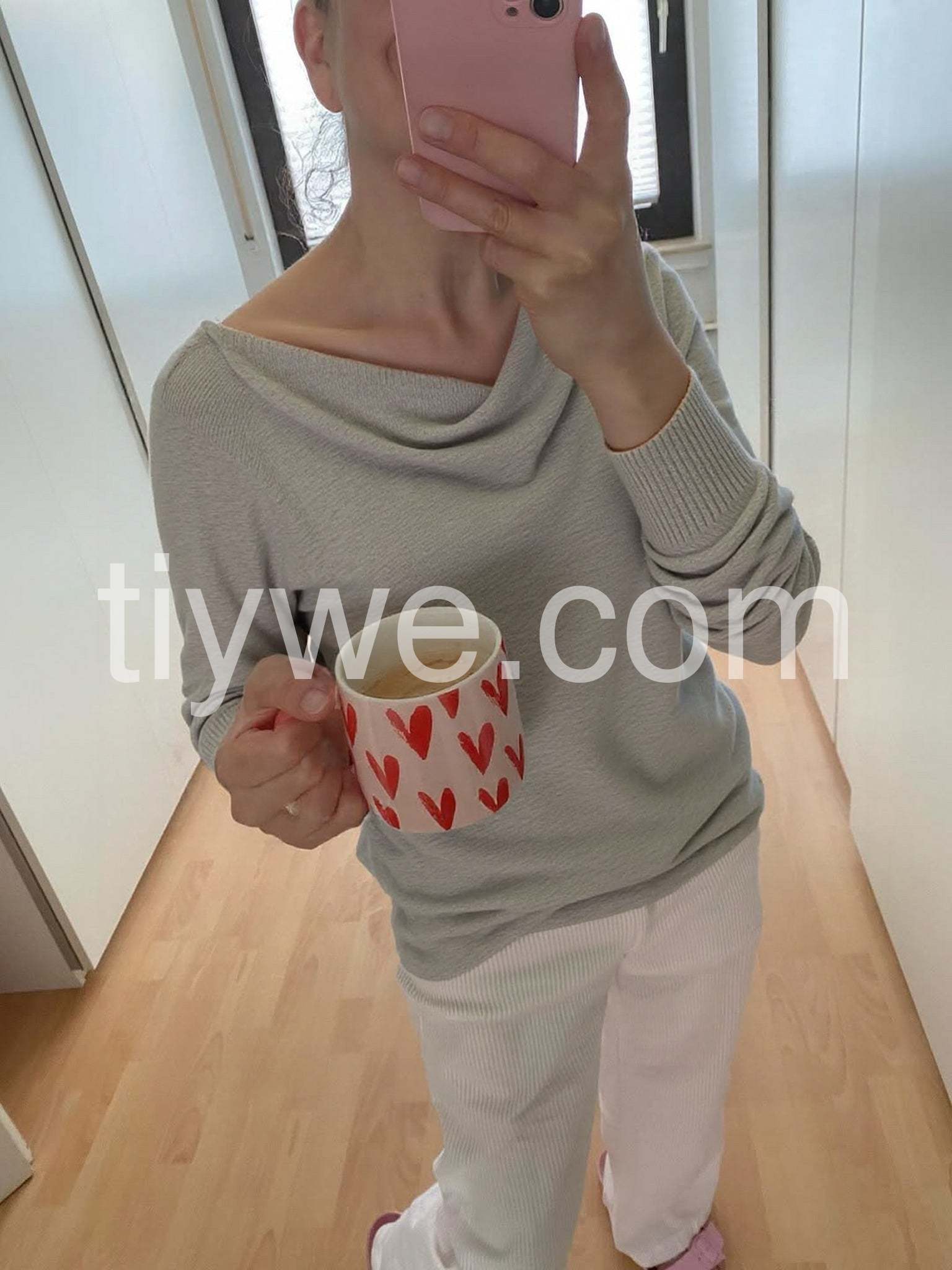Absolutely love this sweater! The cowl neck drapes beautifully and gives it an elegant touch while still being super cozy. The light grey color goes with practically everything. Highly recommend!