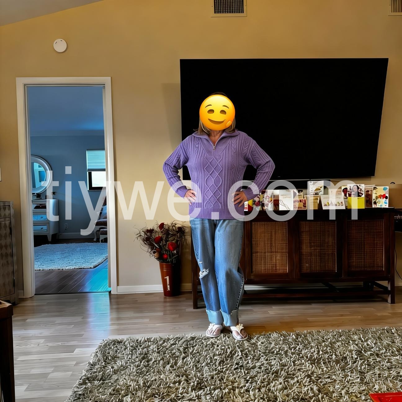 Nice soft sweater. Color and fit were as expected. Washes and dries well. Nice and soft and warm without being real bulky. I like it.